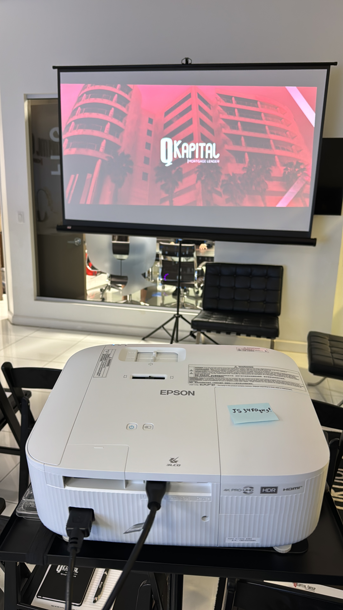 Our premium 4K projector and 100-inch screen rentals include full setup, technical assistance, and transport to your location, ensuring a seamless experience for your corporate or private event. Pick-up, setup, and assistance.